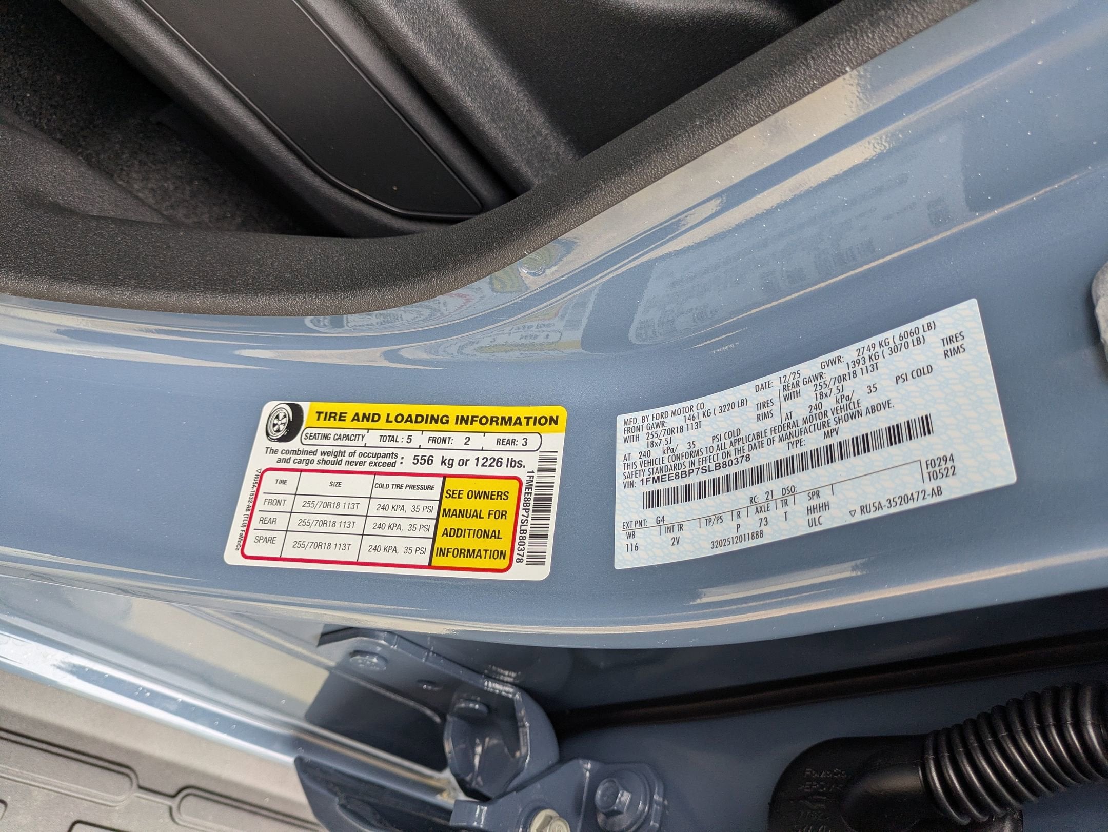 - Tires: P255/70R18 A/T -inc: full size spare tire w/TPMS
