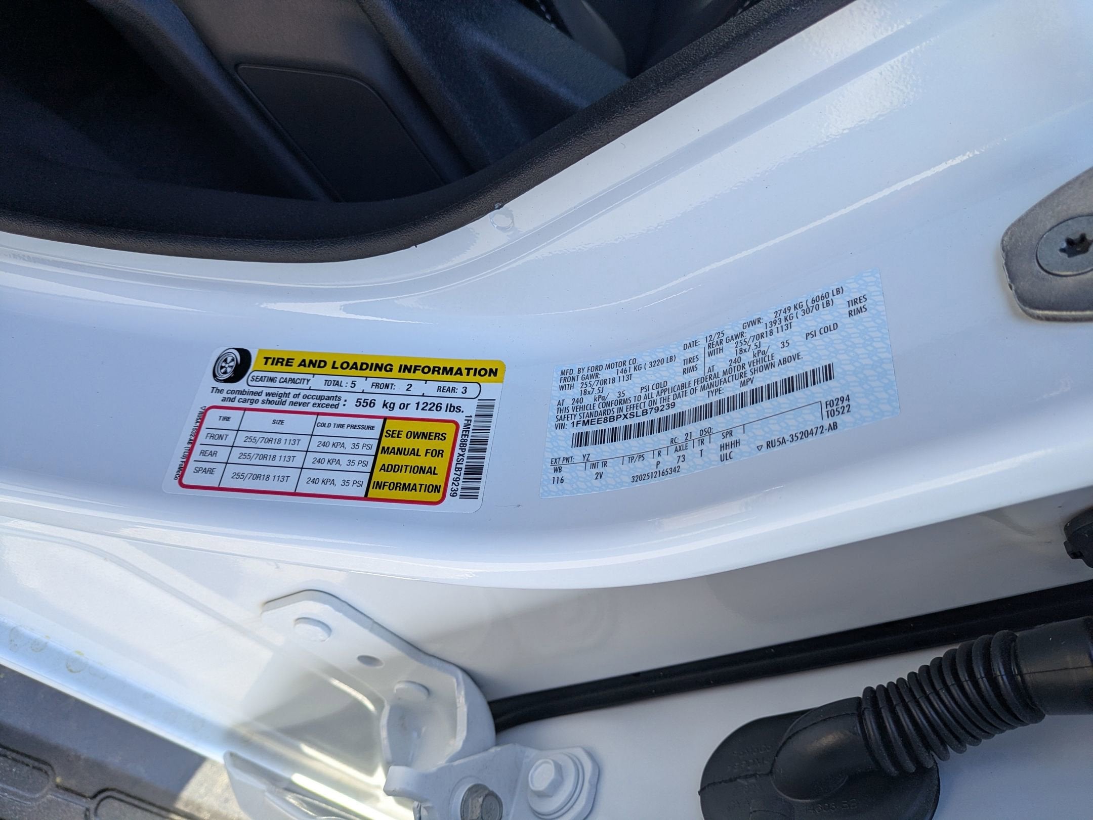 - Tires: P255/70R18 A/T -inc: full size spare tire w/TPMS