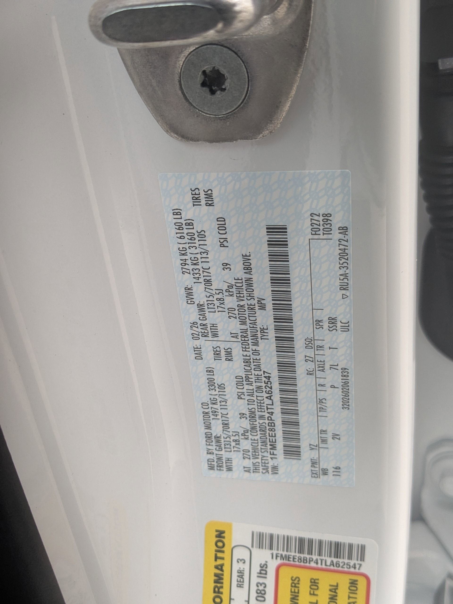 - Gross Axle Wt Rating - Front (lbs): 3270