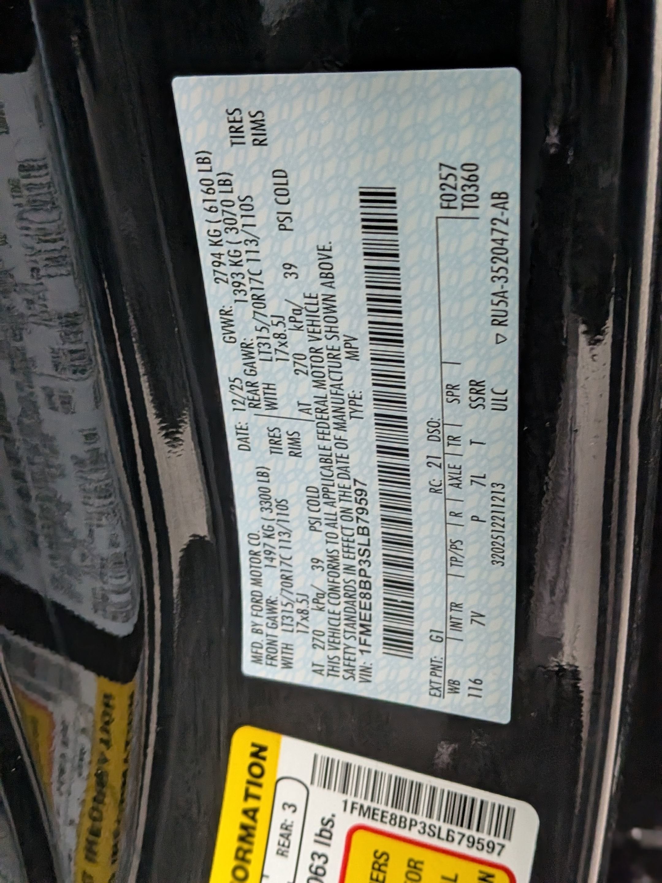 - Gross Axle Wt Rating - Front (lbs): 3270