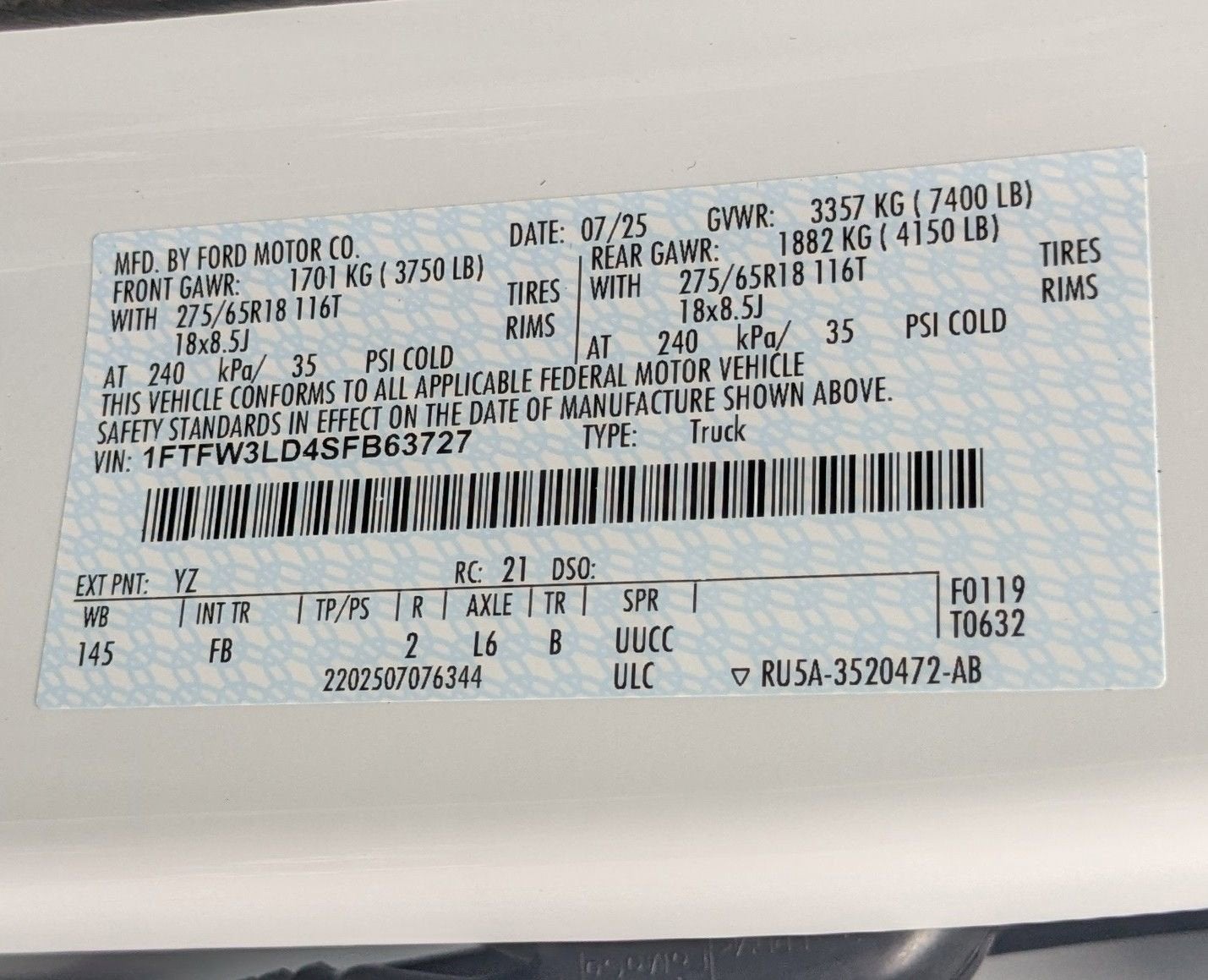 - Gross Vehicle Weight Rating Cap (lbs): 6650