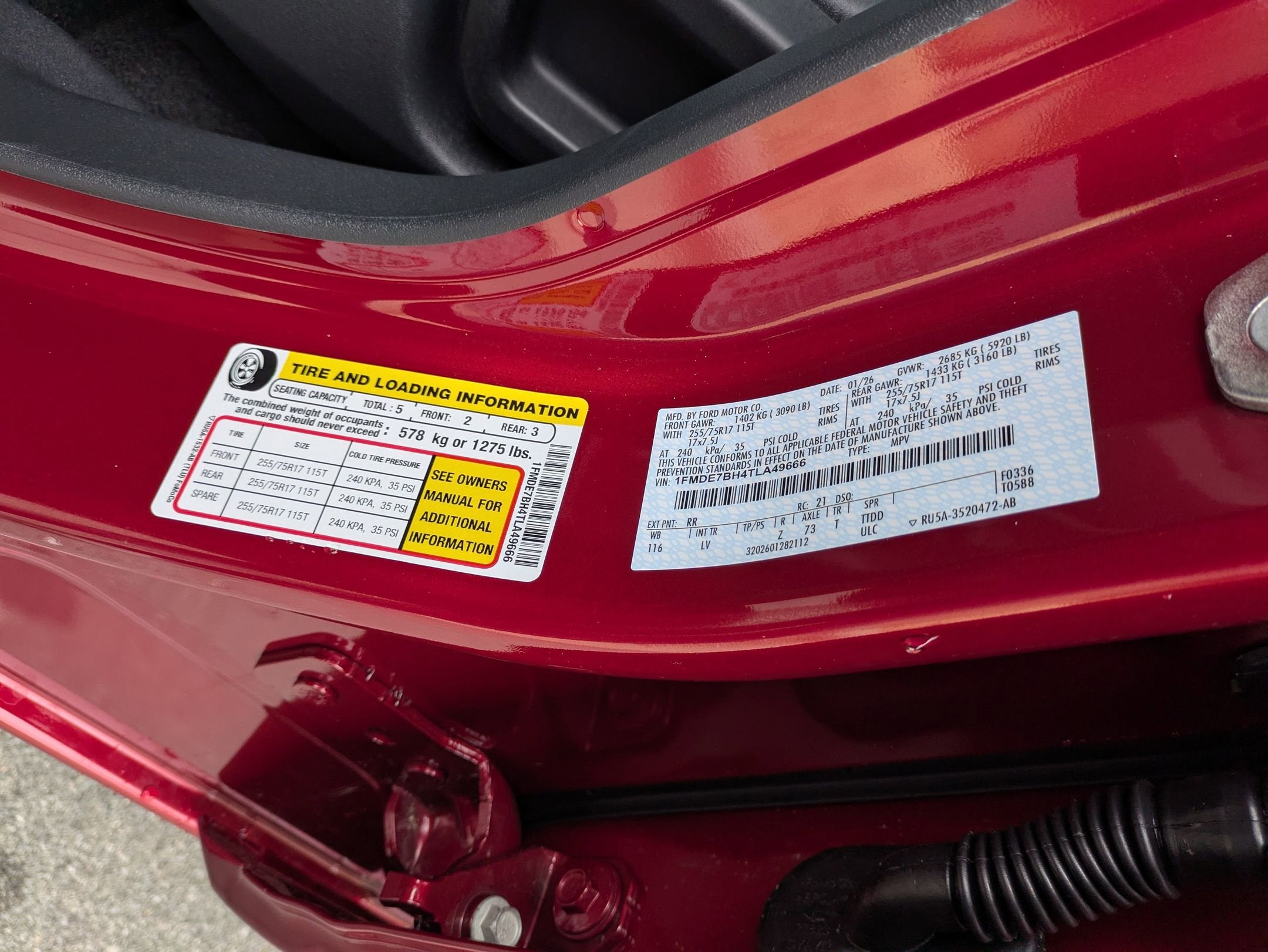 - Tires: P255/75R17 A/T -inc: full size spare tire w/TPMS