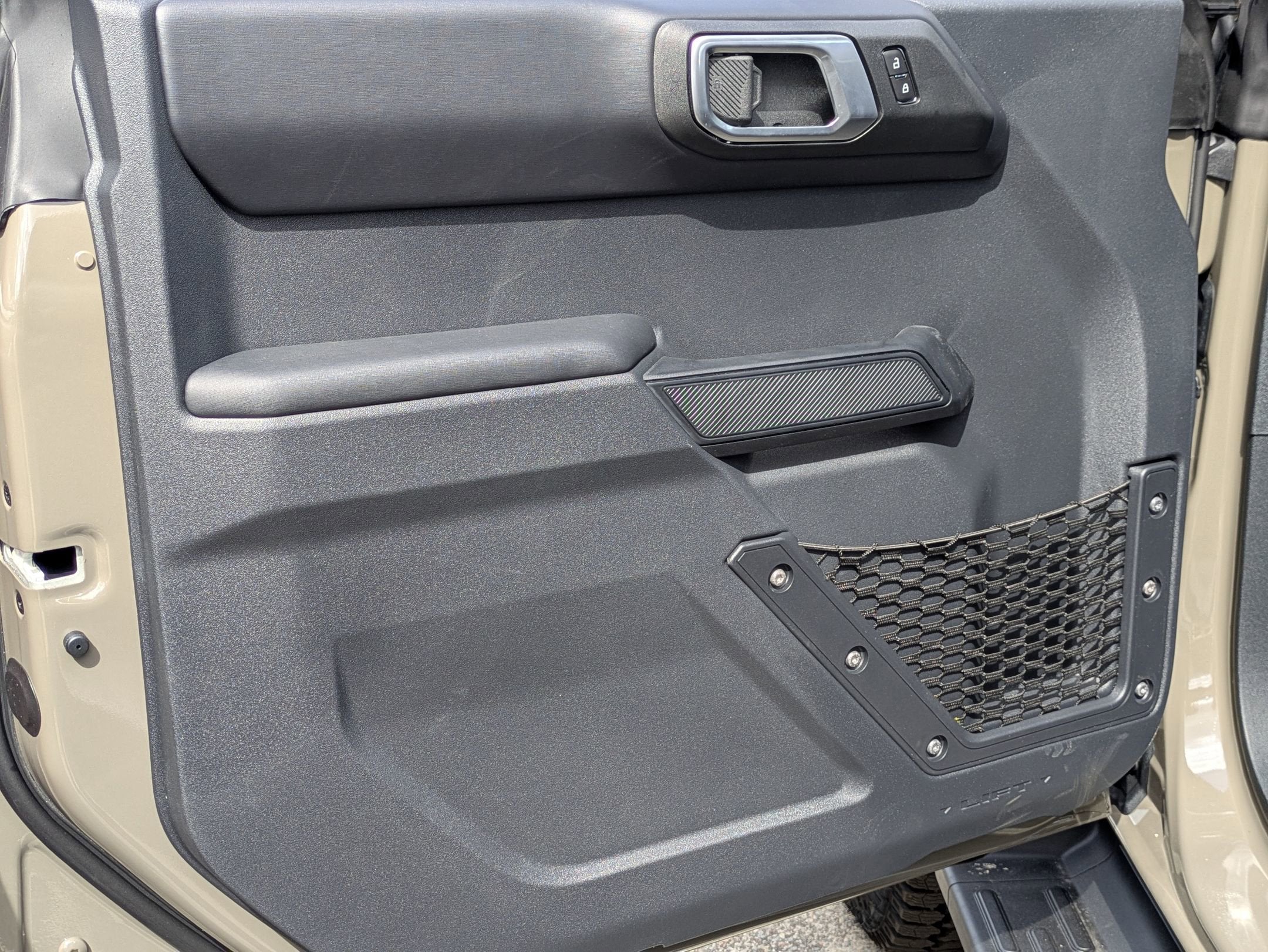 - FRONT ROW TOP PANELS & DOOR STORAGE BAGS -inc: Custom accessory pre-installed The door storage bags are unique to the number of doors On-vehicle door storage is 4-door only