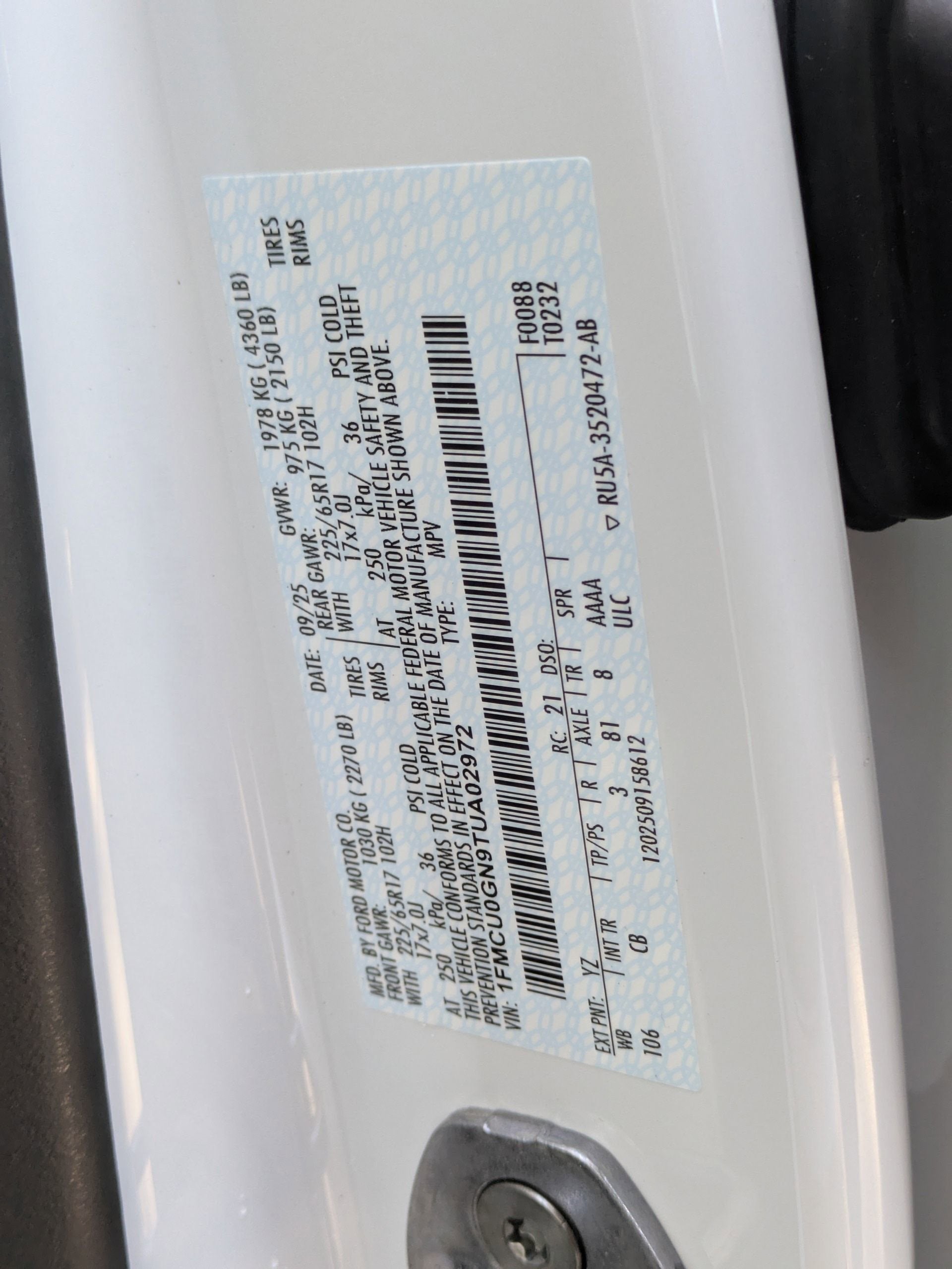 - Vehicle Name: Ford Escape