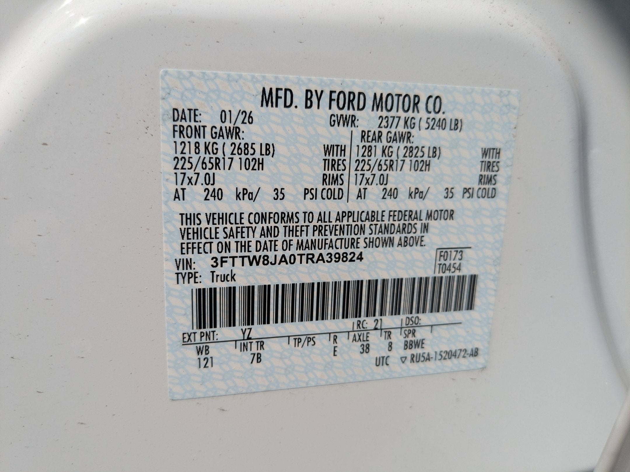 - Gross Vehicle Weight Rating Cap (lbs): 5240