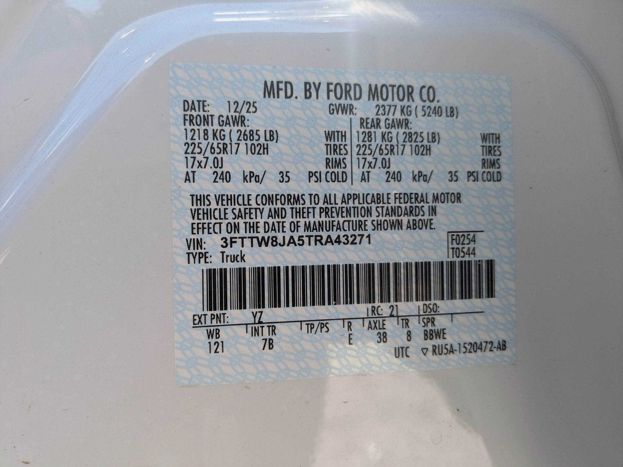 - Gross Vehicle Weight Rating Cap (lbs): 5240